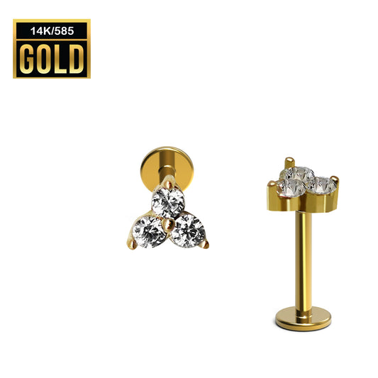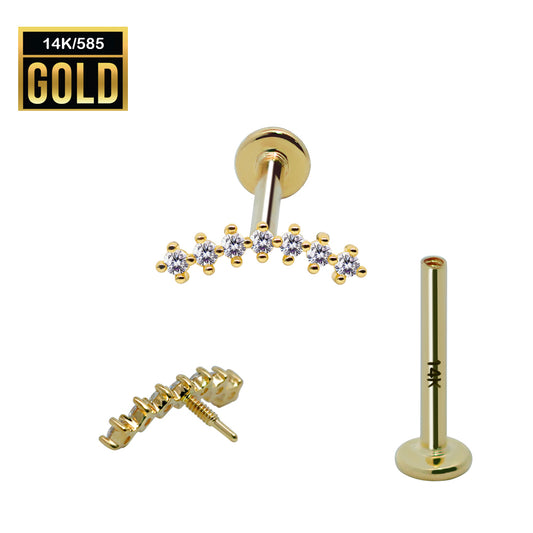 Labret interno de oro real de 14 quilates con diseño superior de circonita cúbica
