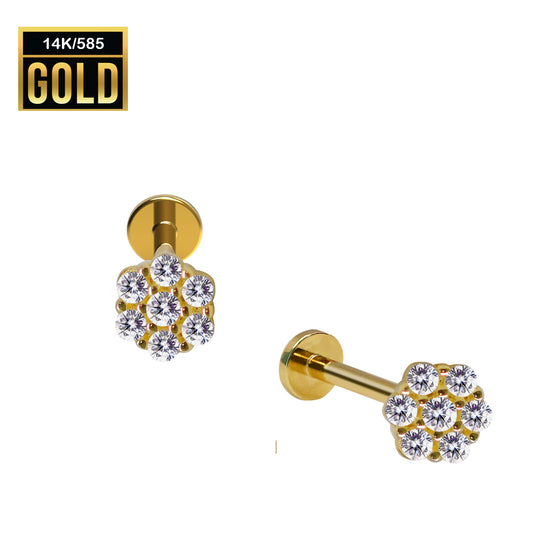 Labret interno de oro real de 14 quilates con diseño de flor en la parte superior con circonita cúbica