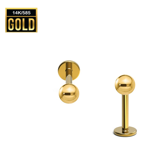 Labret interno de oro auténtico de 14 quilates con bola pulida - 16GA (1,2 mm)