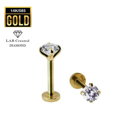 Labret interno de oro real de 14 quilates con diseño superior de diamante sintético redondo creado en laboratorio (configuración de garra)