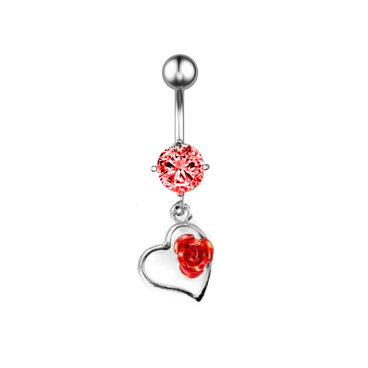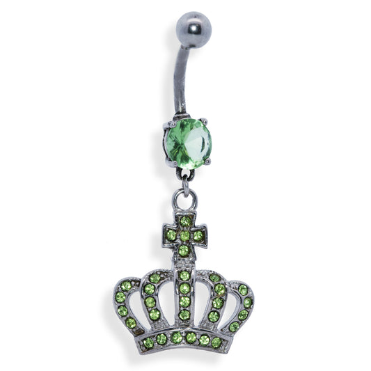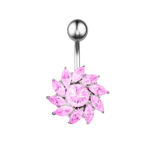 Piercing para ombligo de acero 316L con forma de plátano y diseño moderno con cristales, calibre 14 (1,6 mm)