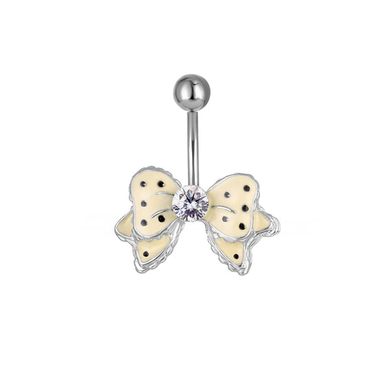 Piercing para ombligo de acero 316L con forma de plátano y diseño de mariposa - CC Crystal Clear