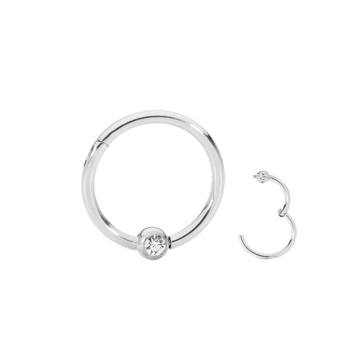 Anillo de segmento con bisagra de acero 316L con bola de cristal de 3 mm con clip - 16GA (1,2 mm)
