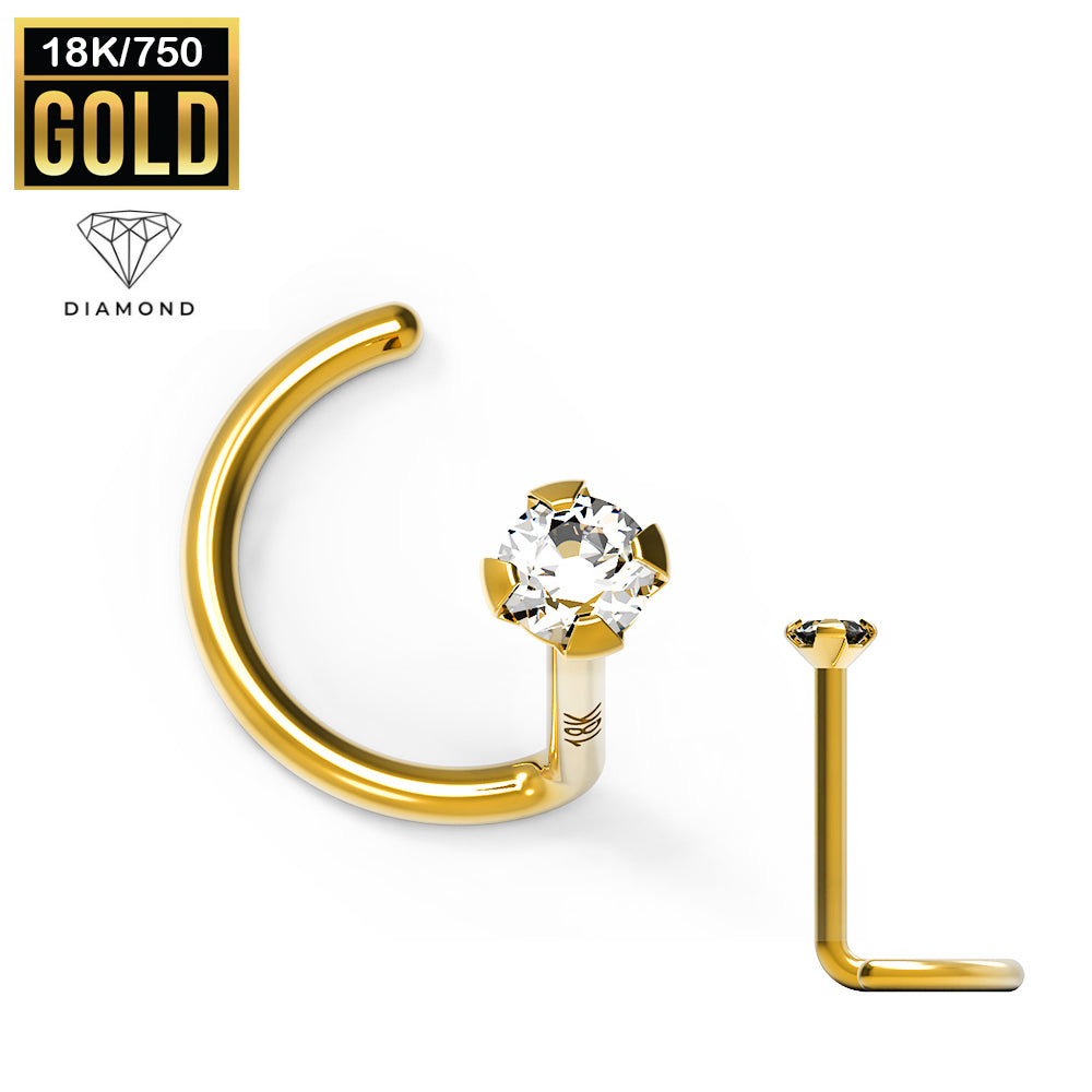 The 18K Real Gold Nose Spiral with Diamond (Prong Setting) - 23GA(0.6mm) is a luxurious and delicate piece, perfect for adding subtle elegance to your look.