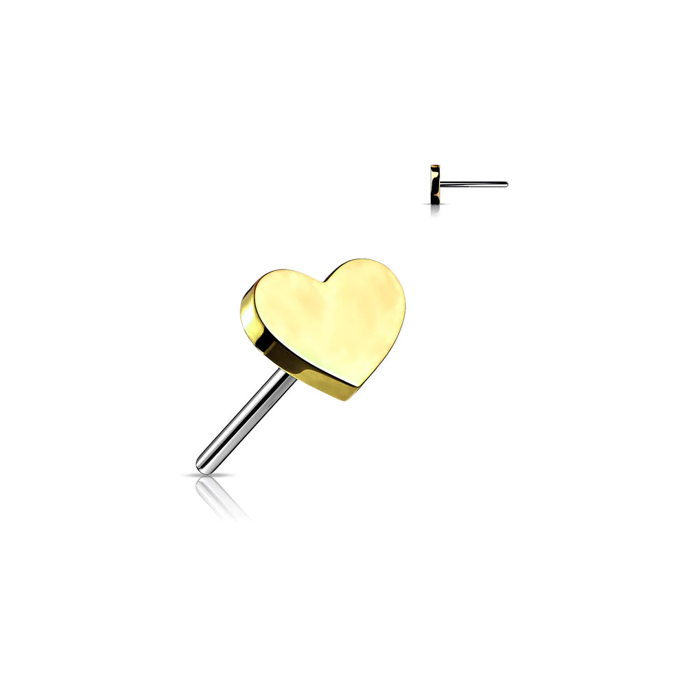 Broche para nariz de acero 316L con revestimiento de titanio y PVD dorado con corte en forma de corazón - 18GA (1,0 mm)