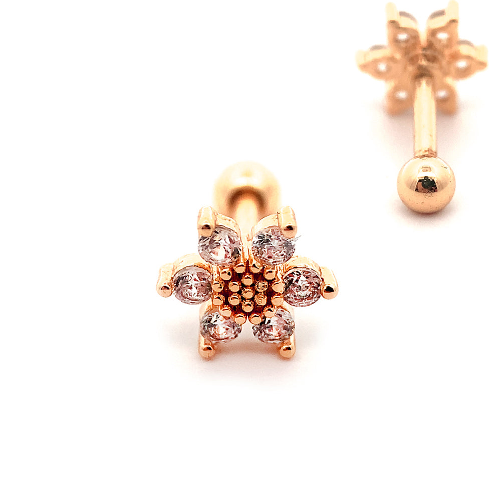 Realza tu colección de joyas corporales con nuestra exquisita barra de acero 316L , bellamente elaborada con un encantador diseño floral y adornada con brillantes piedras CC Crystal Clear . Esta pieza única combina sin esfuerzo durabilidad con elegancia, lo que la convierte en un accesorio perfecto para quienes aprecian la artesanía fina y el estilo elegante.