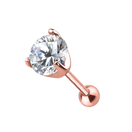 Barbell en or rose véritable 14 carats avec pierre CZ (montage à griffes)