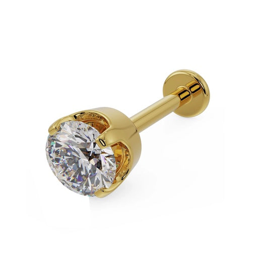 Labret interne en or véritable 14 carats avec design supérieur en diamant synthétique rond créé en laboratoire (montage à griffes)